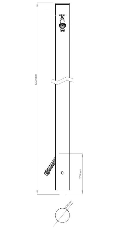 Zahradní vodovodní sloupek - výška 120 cm, kruhový průřez. Výška nadzemní části je cca 100 cm. Připojení sloupku na přívod vody přes mosazný ½“ vnější závit. Sloupek je v podzemní části perforovaný pro prostrčení kotevního drátu nebo roxoru (v případě zabetonování). Sloupek „LOOP“ - kompletní sestava: Sloupek je osazen jedním ½“ kohoutem s vnějším závitem ¾“ osazeným adaptérem na rychlospojku. Sloupky jsou nabízeny v barvě patina a pistacio. Barva kohoutů je shodná s tělem sloupku.