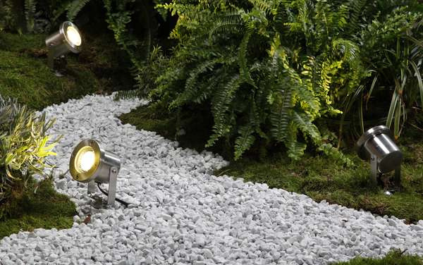 Sada tří venkovních svítidel Catalpa vhodných k efektnímu nasvícení objektů, křovin a stromů v okrasných zahradách a dalších exteriérech. Každé svítidlo je dodáváno včetně LED světelného zdroje teplého bílého světla o příkonu 3 W.