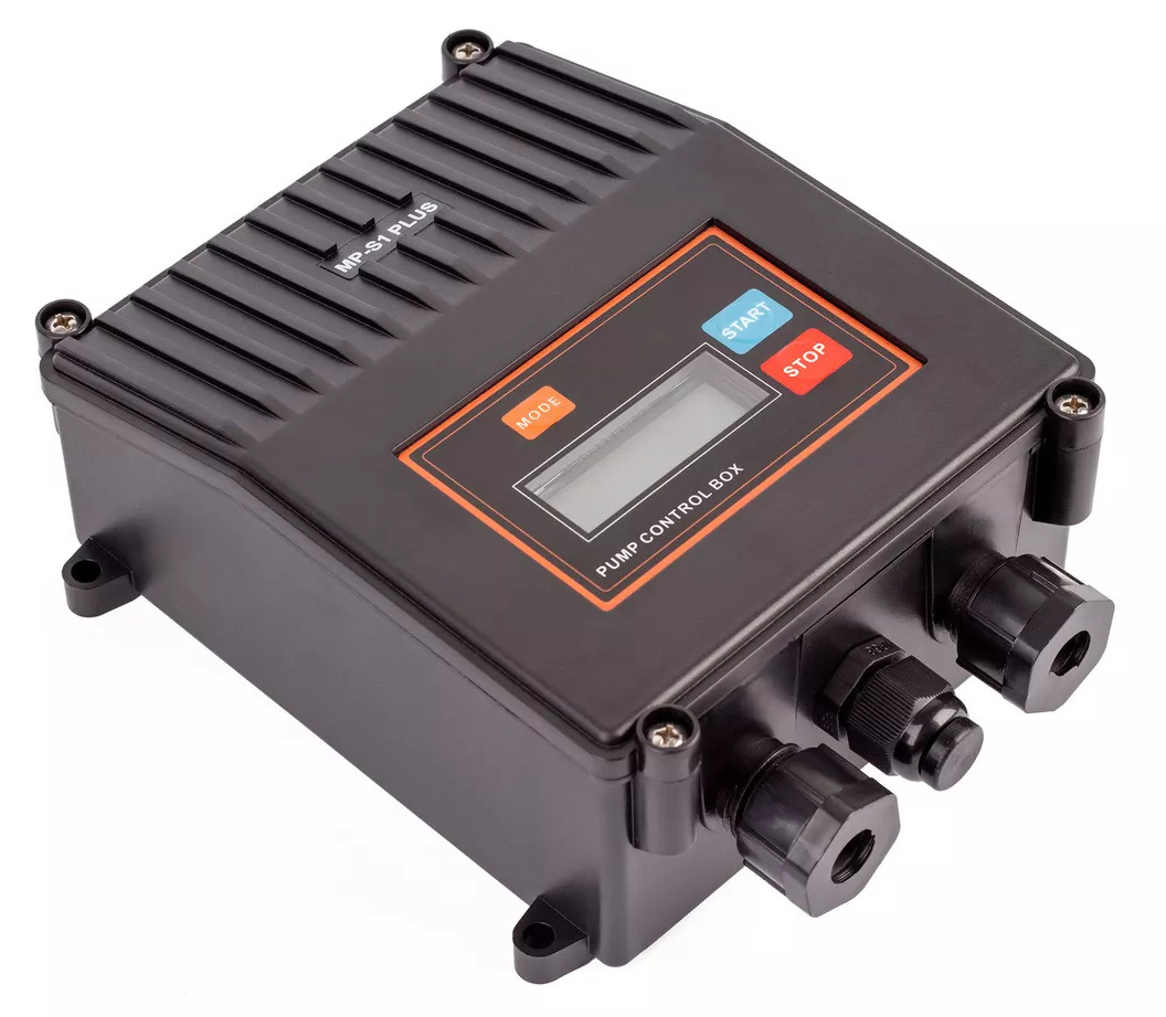 - Inteligentní controlBox MP-S1 PLUS je snadno použitelné, programovatelné řídicí a ochranné zařízení pro přímý start jednofázových ponorných nebo povrchových odstředivých čerpadel.