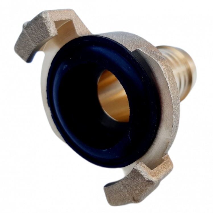 Robustní mosazná rychlospojka typu GK-M (kompatibilní se systémem Geka) s přechodem na zahradní hadici. Určena pro rychlé a pevné spojení hadic a potrubních prvků v zavlažovacích, čerpacích i průmyslových systémech. Rychlospojka má zajišťovací čelisti s bajonetovým závěrem, které zaručují spolehlivý a těsný spoj i při vyšším tlaku. Vyrobeno z odolné mosazi, vhodné pro profesionální nasazení v terénu.
