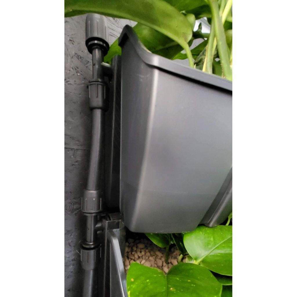 Otvor pro uchycení kapkovacího potrubí 16mm přímo v truhlíku zajišťuje snadnou instalaci zavlažovacího systému. Stačí pouze zacvaknout kapkovací potrubí do truhlíku.