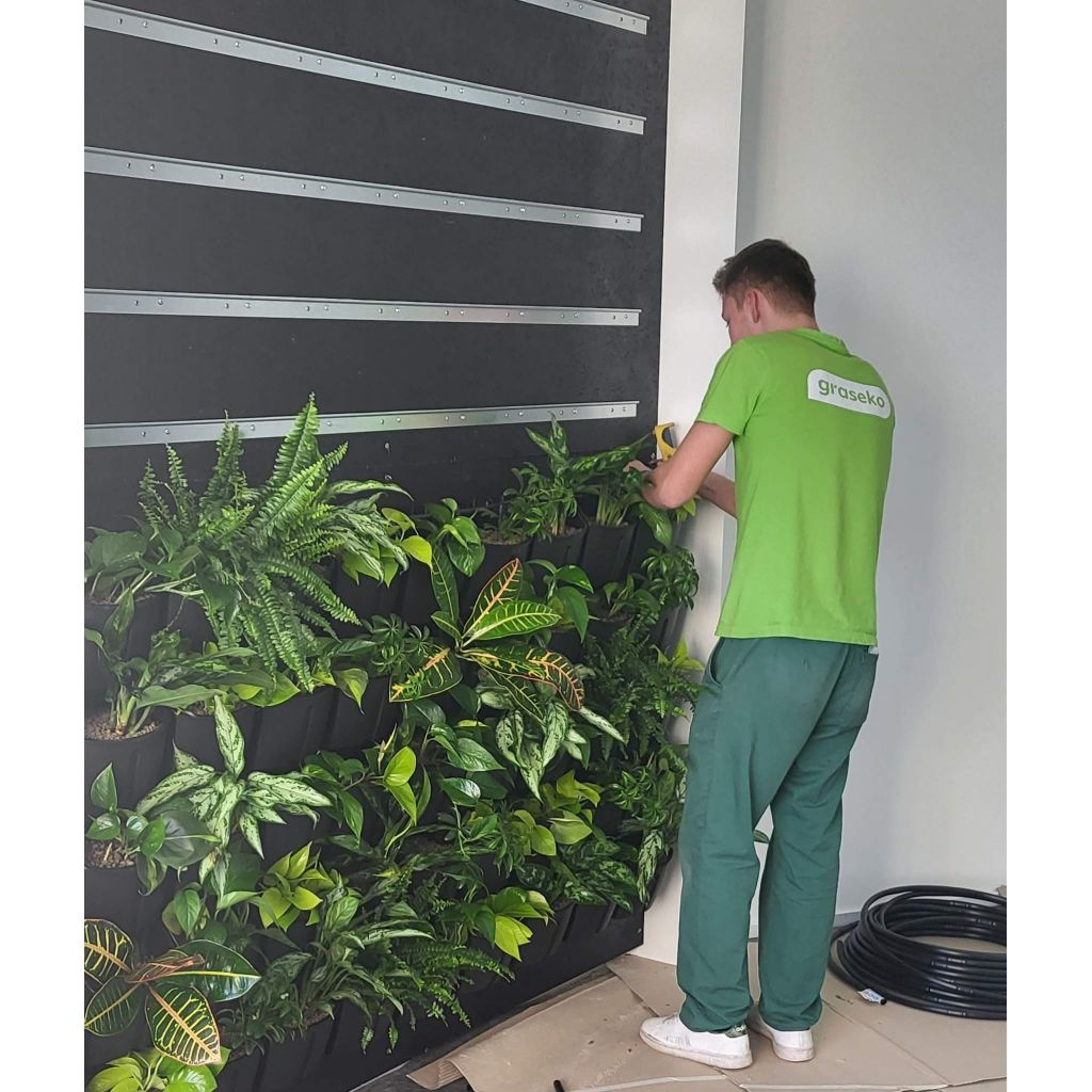 Vertikální systém Graseko je modulární a umožňuje snadné sestavení živé stěny jakékoliv velikosti. Vertikální systém Graseko uspokojí i ty nejnáročnější pěstitele.