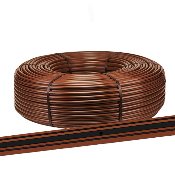 Kapkovací potrubí 16 mm, balení 100 m, spon 30 cm, jednoduchý plochý kapkovač 3,4 l/h s kompenzací tlaku, zpětným ventilem do 1,8 m (AS a DS), s přídavkem oxidu měďnatého. Podzemní i nadzemní aplikace, cena uvedena za 1 m, hnědá barva. Mimořádně kvalitní PREMIUM produkt!