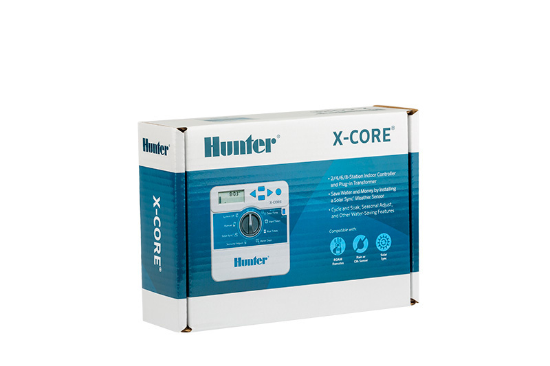 Základní typový model ovládacích jednotek HUNTER s pevným počtem sekcí pro instalaci do interiéru - a to až do velikosti 8 sekcí. Spolehlivá v provozu, jednoduchá v ovládaní a programování. Ovládací jednotka X-Core představuje perfektní řešení pro všechny menší závlahové systémy - především zahrady rodinných domů, menší sportovní plochy apod. 4 startovací časy spolu se 3 programy poskytují uživateli dostatek prostoru k vytvoření závlahového kalendáře pro jakoukoliv situaci. Samozřejmostí jsou pokročilé funkce jako je nastavitelná pauza mezi sekcemi, možnost vložení vsakovacích pauz a cyklů, nebo senzorový vstup konfigurovatelný pro každou sekci samostatně. A navíc, díky SMARTPORTU, nabízí uživateli ještě komfort ovládání pomocí dálkového ovladače ROAM, nebo možnost automatického řízení délky zavlažování pomocí inteligentního ET senzoru SOLAR SYNC. Napájení pomocí externího transformátoru.