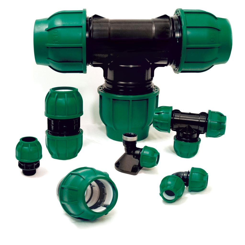 Mechanické spojování potrubních rozvodů závlahových systémů z nízkohustotního (PE-LD/ES) a středněhustotního (PE-MD) polyetylénu v jednovrstvém nebo dvouvrstvém (PE-MD / PE-LLD) provedení. U systémů bez tlakových rázů lze použít i na vysokohustotní flexibilní polyetylén (PE-HD, PE 80).