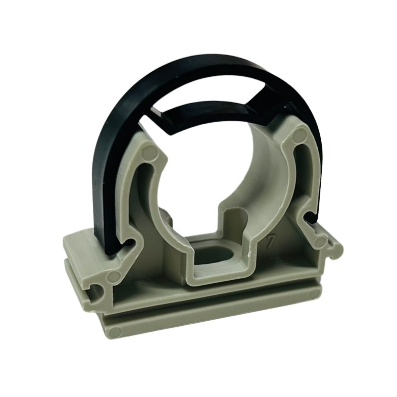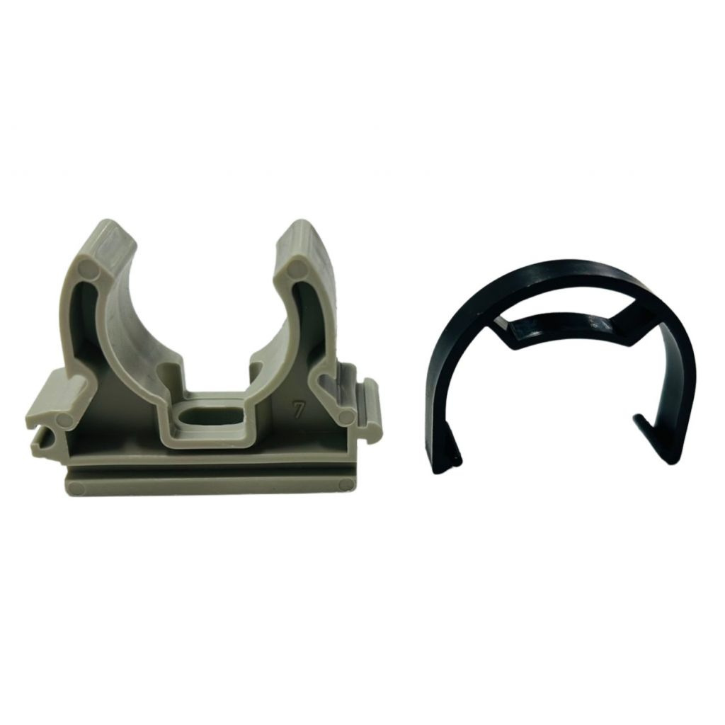 Plastová příchytka s třmenem na potrubí z plastu o průměru 20 mm
