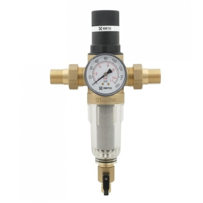 Zachycení jemných mechanických nečistot obsažených ve zdroji vody pro závlahový systém. Obvyklé použití filtrů s vestavěným redukčním ventilem je u menších systémů (např. mikrozávlahy) napojených v interiéru nebo v místech s vyšším tlakem, kde není místo na samostatný redukční ventil. Vestavěný redukční ventil chrání potrubí a závlahu proti nadměrným kolísavým tlakem. Součástí balení je manometr pro kontrolu výstupního tlaku. Redukční ventil je možné nastavit výstupní tlak v rozsahu od 1,0 do 5,5 barů.
