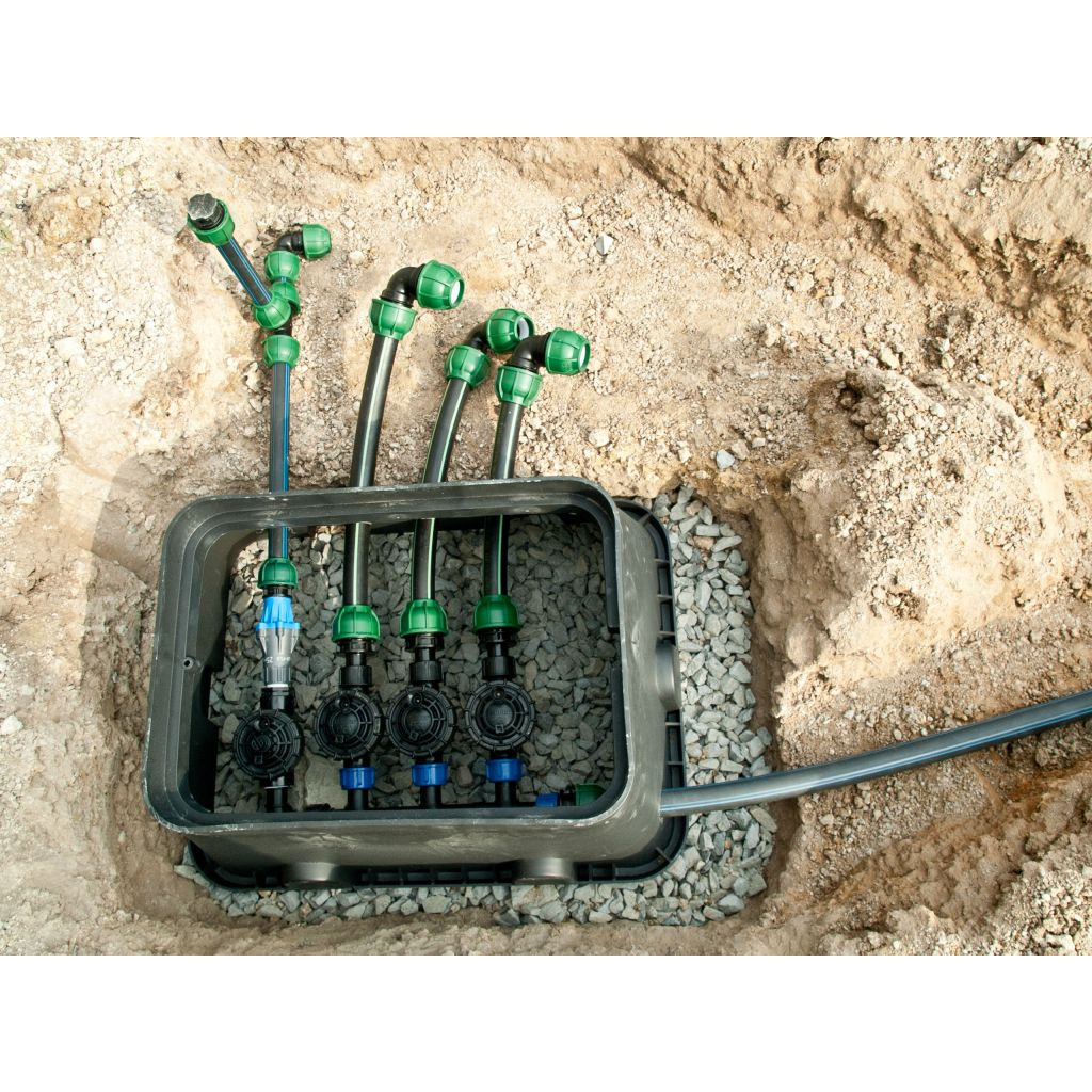 Ventilová šachtice slouží k ochraně důležitých, pod zemí umístěných prvků AZS (nejčastěji elektromagnetických ventilů nebo rychlospojných ventilů). Zároveň vymezují manipulační prostor tak, aby byl možný pohodlný přístup k prvkům a jejich servis. Víko šachtice je opatřeno ochranným zajišťovacím šroubem. Otvory pro potrubí by se měly vyhotovovat výhradně pomocí vykružováku. Nikdy by se neměl narušovat spodní lem šachtice – hrozí ztráta torzní tuhosti a provalení stěny dovnitř vlivem zemního tlaku. Šachtice je určena pro umístění tří 1“ elektromagnetických ventilů. Určeno pro zahrady rodinných domů, případně pro málo exponované plochy. Šachtice není určena pro pojezd těžší zahradní technikou.
