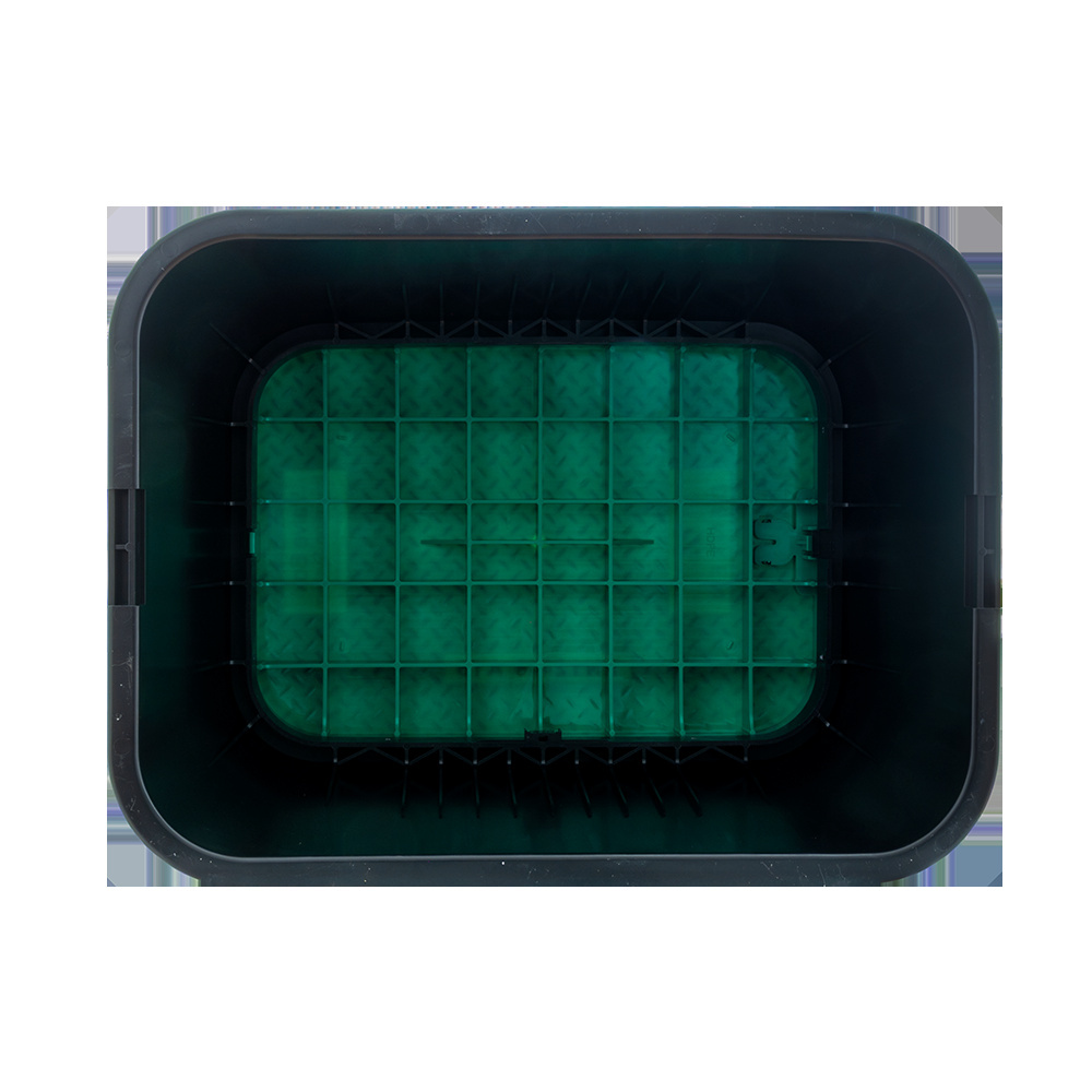Konstrukce šachtice klade velký důraz na detaily a udržitelnost. Víko je opatřeno patentovaným uzamykacím systémem, který umožňuje rychlý přístup pouze pomocí šroubováku a eliminuje potřebu kovových šroubů. Uvnitř šachtice naleznete integrované držáky pro uchycení bateriové ovládací jednotky a vodotěsných konektorů, přičemž je možné k ní snadno připevnit i základový rošt.